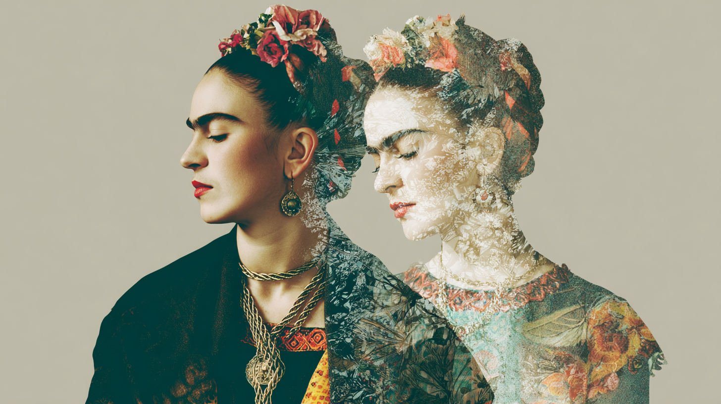 Surreal human–AI portraits that blur identity lines.